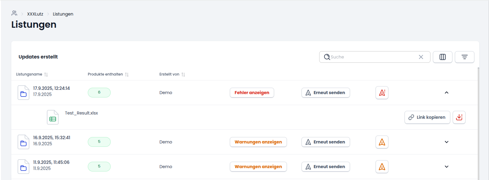 Bei vielen Händlern können Sie in den Listungen die Datei herunterladen, die über die Schnittstellen übergeben wurde, um die übertragenen Daten zu kontrollieren.